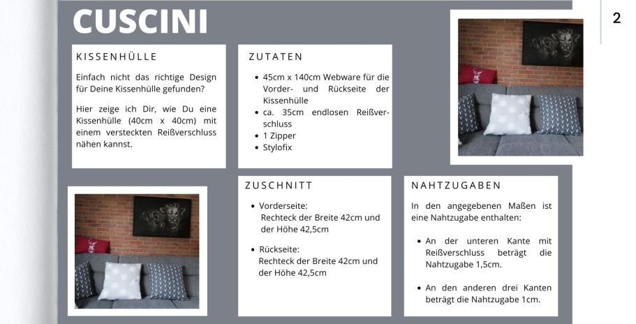 Freebie „Cuscini“ – Kissenhülle nähen